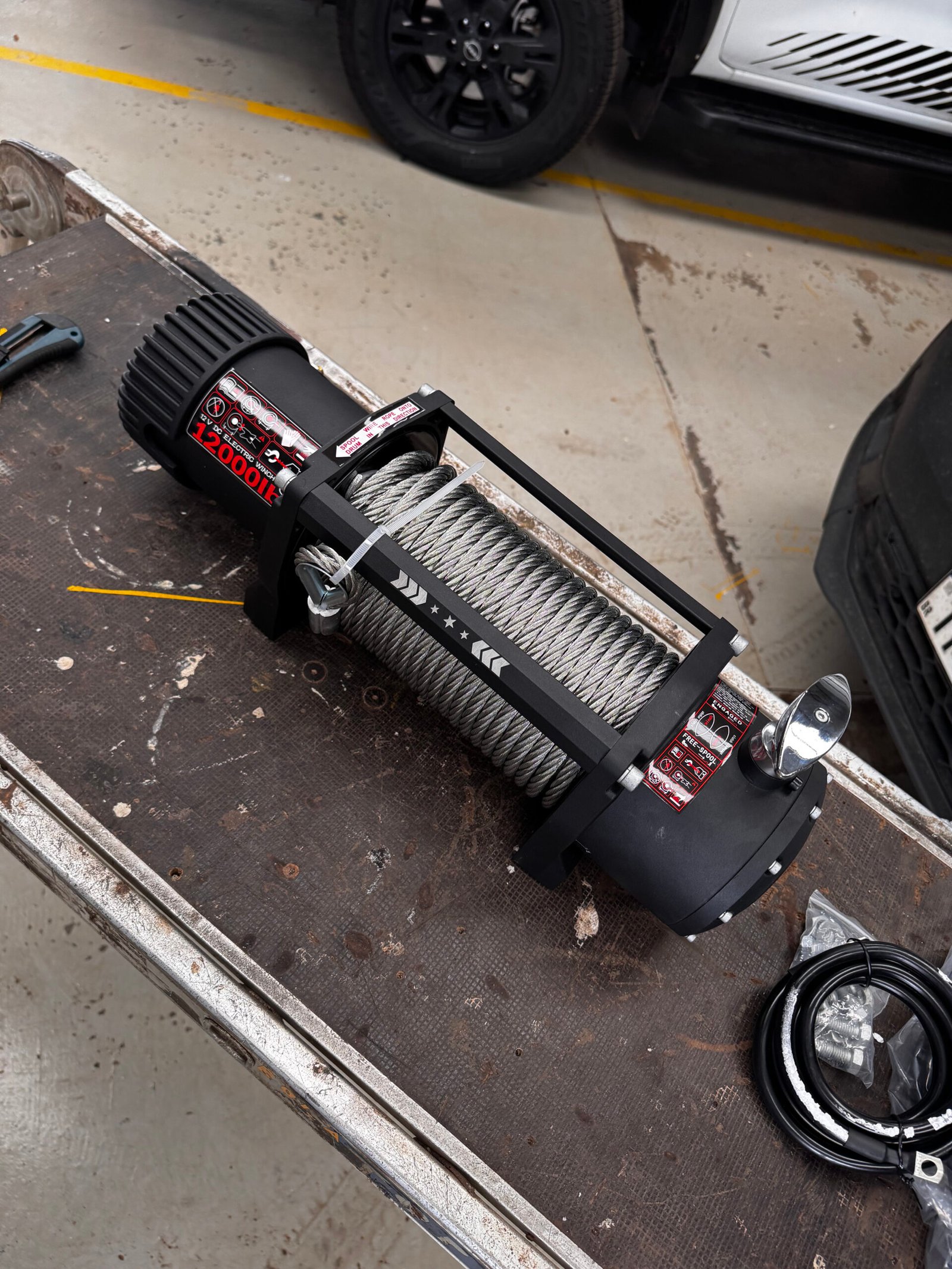 | 12.000 libras | 5.443 kg | 49W / 6,6 HP | Cabo de aço – 9,5 mm × 28 m |