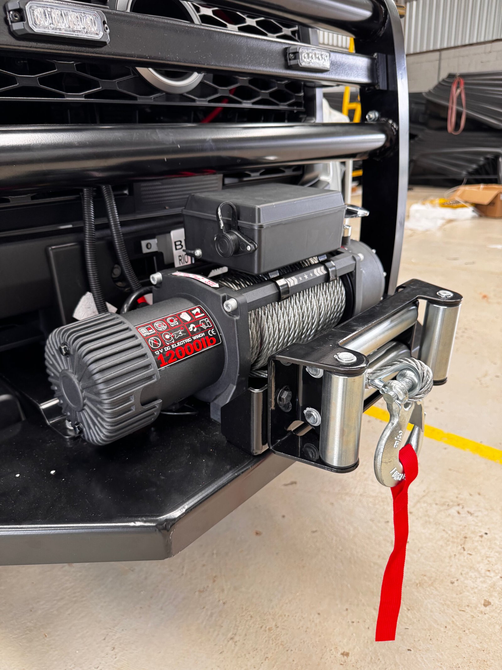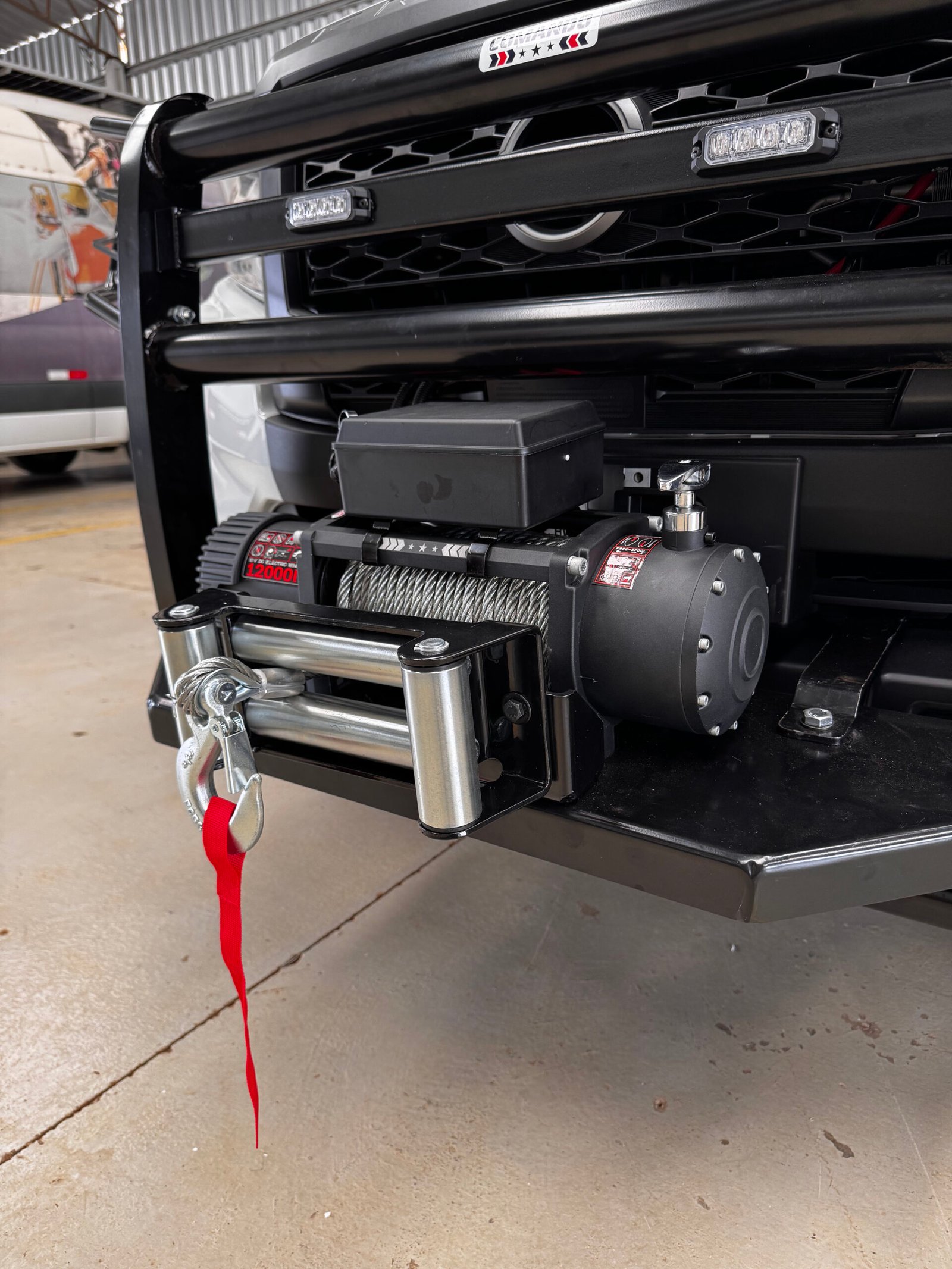 O guincho elétrico é projetado para auxiliar o veículo em situações de resgate, reboque e superação de obstáculos em terrenos difíceis. Com uma estrutura robusta e motor elétrico potente, ele proporciona força de tração ideal para operações off-road e resgates de alta demanda. O guincho é equipado com cabo de aço ou sintético de alta resistência e um sistema de freio seguro, garantindo controle e precisão durante o uso. A instalação é realizada com fixação firme à estrutura frontal do veículo, assegurando estabilidade e segurança, sem comprometer a integridade da carroceria.