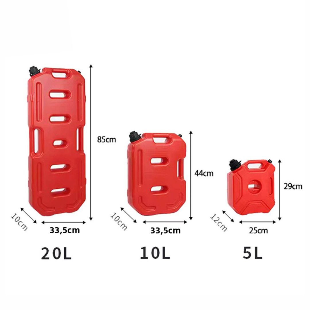 Uso: Lata de armazenamento de combustível, perfeita para emergências e reabastecimento em movimento.